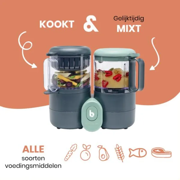 De Babymoov Nutribaby One Keukenmachine is compact van formaat en compleet uitgerust met alle functies die je nodig hebt. De keukenmachine maakt het gemakkelijk om maaltijden vol verse ingrediënten voor je kindje te bereiden. Dankzij de 2 mandjes heb je de mogelijkheid om tegelijk te koken en te blenden. Bij elkaar hebben de mandjes een inhoud van totaal 2100 ml. Alle opties worden eenvoudig bedient met één knop waar je keuze hebt uit 4 verschillende functies. Stomen, blenden, potten verwarmen of ontdooien, ieder voedingsmiddel wordt heerlijk bereid in de keukenmachine. Verder wordt de keukenmachine geleverd met een handig stoommandje dat perfect is voor het stomen van vlees en groenten.