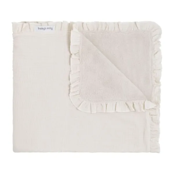 De bovenkant van de deken is voorzien van speelse ruches, wat zorgt voor een subtiele en elegante uitstraling. Dit verfijnde detail maakt de deken niet alleen praktisch, maar ook een stijlvolle toevoeging aan de babykamer. Dankzij het neutrale kleurenpalet past de deken moeiteloos in diverse interieurstijlen, van modern tot klassiek.