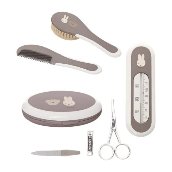De Bébé-Jou Geschenkset – Miffy and Friends – Chalk Brown is een complete en stijlvolle set met onmisbare verzorgingsproducten voor je baby. Deze set bevat een borstel, kam, badthermometer en manicureset met schaartje, nagelknipper en vijl, allemaal in een bijpassend opbergdoosje. Ideaal voor thuis of onderweg.