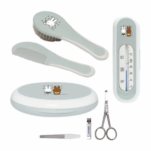 - – Inclusief kam, borstel, manicureset, badthermometer en opberger
