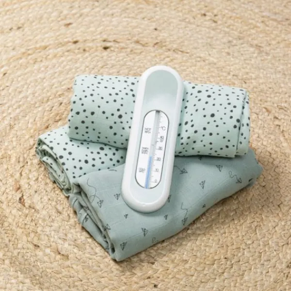 De Bebe-Jou Badthermometer meet het water in bad op een nauwkeurige en veilige manier. De badthermometer meet heel correct, zo kan je precies zien hoe warm het water in het badje is. De thermometer is uitgerust met pijltjes, zodat je de juiste graden kan zien als de badthermometer in bad ligt. De temperatuur voor het badwater moet ongeveer 37 graden zijn.