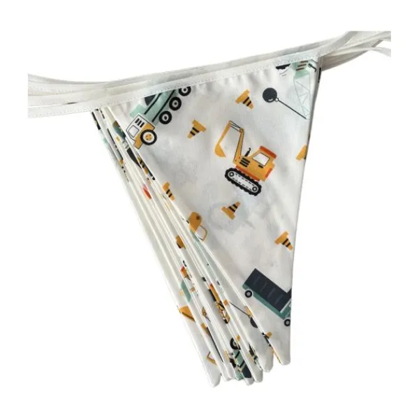 De Bink Bedding Bram Vlaggenlijn – Maat L is een stoere en veelzijdige decoratie, ideaal voor allerlei gelegenheden. Deze vlaggenlijn is gemaakt van hoogwaardige katoenen stof en voorzien van een speelse voertuigenprint met vrachtwagens, graafmachines en tractoren. De natuurlijke tinten maken het een tijdloze keuze die perfect past bij een feest, bruiloft of als permanente decoratie in een kinderkamer.