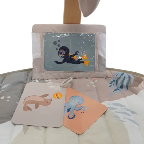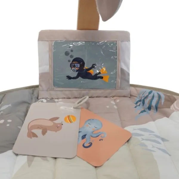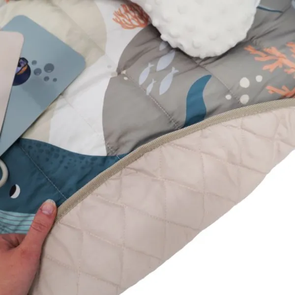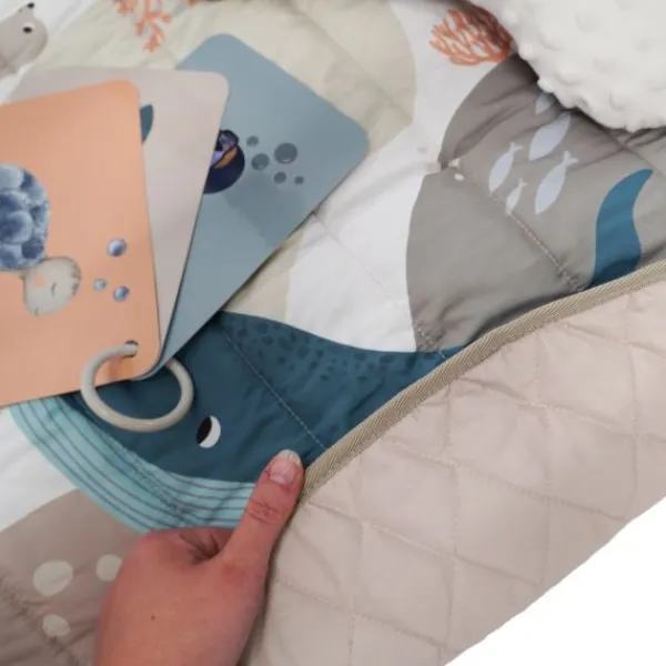De speelmat is gemaakt van zacht, dubbelzijdig materiaal dat zorgt voor optimaal comfort. Lichtgewicht en gemakkelijk mee te nemen, biedt de Ocean Bliss Houten Speelgym eindeloos speelplezier én ontwikkelingsvoordelen voor je baby.