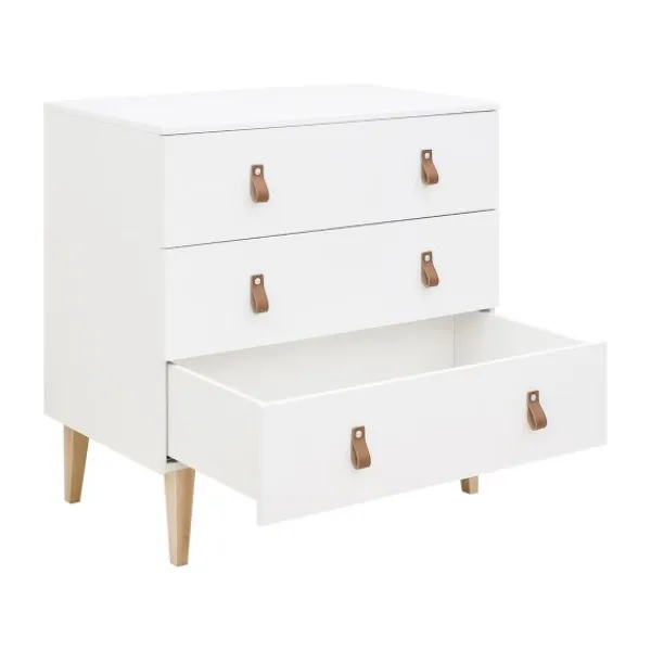 De Bopita Indy Babykamer is kenmerkend aan de meubels in een Scandinavische look. Deze look wordt gecreëerd door de strakke look met daaronder schuine beuken poten wat ieder meubel heeft. De laden en deuren beschikken over softclosing ter behoud van het meubel. Het is een leuke kamer waarvan de meubels zijn afgewerkt met een mileu- en kindvriendelijke lak. De babykamer is met iedere stijl te combineren.