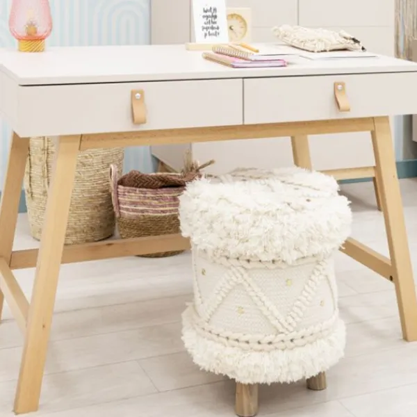 Met een breedte van 110 cm en een diepte van 60 cm biedt het bureau voldoende werkruimte voor huiswerk, tekenen of andere creatieve bezigheden. Dankzij het tijdloze design en de hoogwaardige materialen is dit bureau een duurzame keuze die meegroeit met je kind.