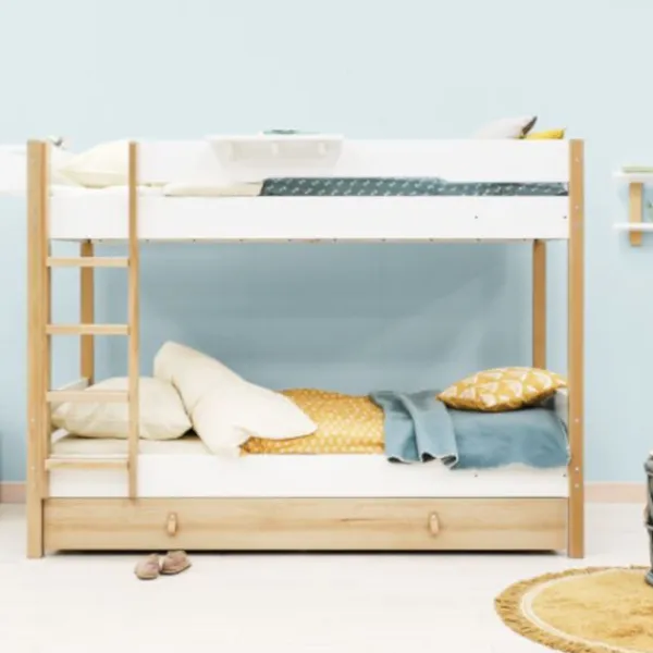 Het Bopita Lucas Bed – 90 x 200 cm – Wit / Naturel is gemaakt van solide MDF en beukenhout. Met een centrale ondersteuningslat en een veilige watergedragen lakafwerking, is het zowel kindvriendelijk als milieuvriendelijk. Het bed wordt geleverd inclusief een stevige bedbodem. Onder het bed is nog ruimte om een bedlade te plaatsen welke gebruikt kan worden als opberglade of als logeerbed.