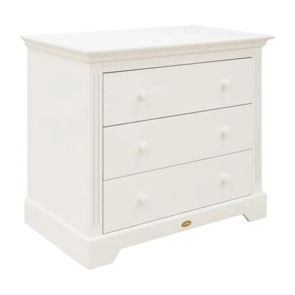 De commode is voorzien van drie ruime lades die soepel openen en sluiten. Het brede bovenblad is geschikt om een aankleedkussen op te plaatsen, zodat je de commode ook als verzorgingsplek kunt gebruiken. Gemaakt van hoogwaardig MDF en spaanplaat staat dit meubel garant voor een stevige en duurzame constructie.
