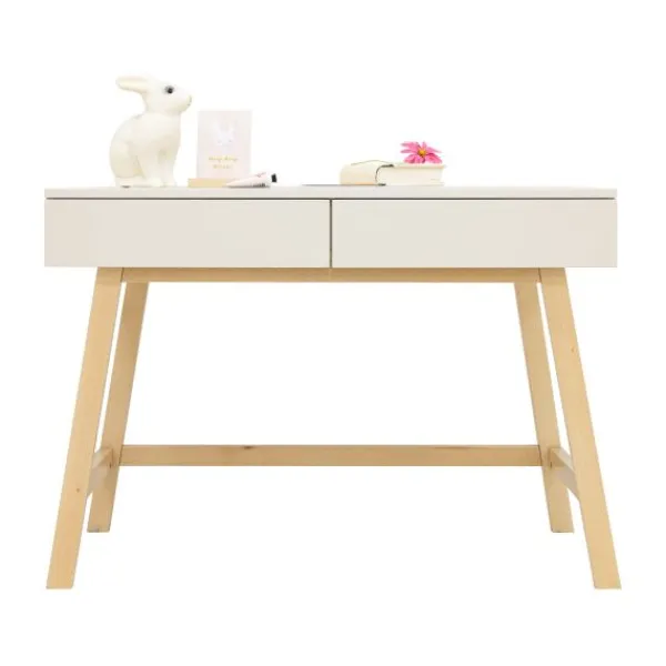 Gemaakt van hoogwaardig MDF en beukenhout, afgewerkt met kindvriendelijke lak op waterbasis. De leren grepen en het Scandinavische design maken deze kamer tot een eigentijdse keuze voor opgroeiende kinderen.