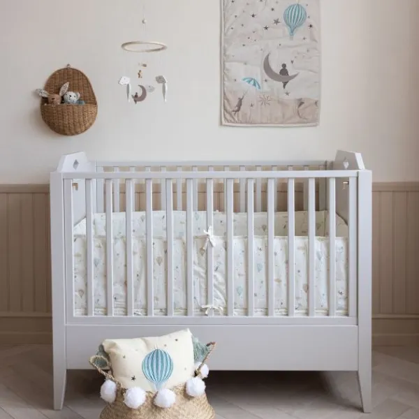 De Cam Cam Houten Wiegmobiel – Dreamland brengt een dromerige sfeer in de babykamer. Deze prachtige mobiel is gemaakt van hoogwaardig hout en versierd met sfeervolle figuren zoals wolkjes, luchtballonnen, een maantje en een ster. Met zijn rustige, zachte kleuren en tijdloos design past deze mobiel perfect bij iedere stijl babykamer en zorgt hij direct voor een warme, geborgen uitstraling boven het wiegje of de commode.