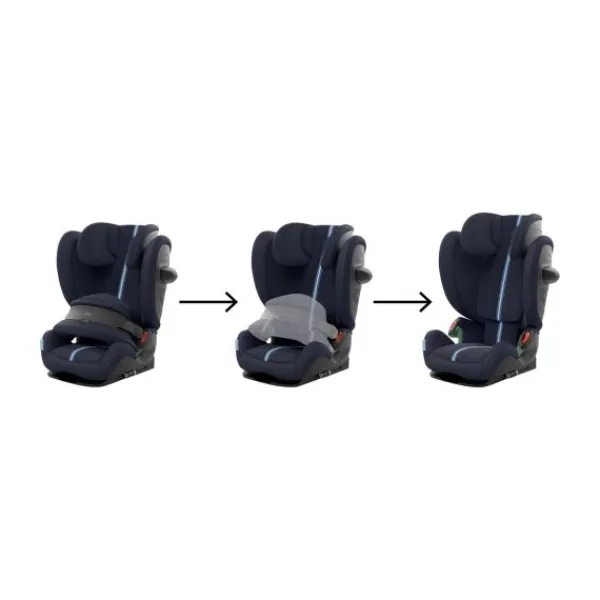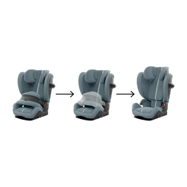 In de beginfase (met veiligheidskussen) plaats je de Pallas G3 Plus met ISOFIX en Top Tether voor extra stabiliteit. Zodra je kind de limiet voor het kussen bereikt, verwijder je het kussen en gebruik je de 3‑punts autogordel om de stoel vast te zetten (groep 2/3). Dit ontwerp maakt de stoel flexibel inzetbaar, zelfs tussen meerdere auto’s.