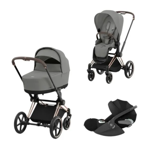 Deze 3-in-1 set wordt geleverd met een frame, zitting, zonnekap, veiligheidsbeugel, reiswieg, regenscherm en autostoel.