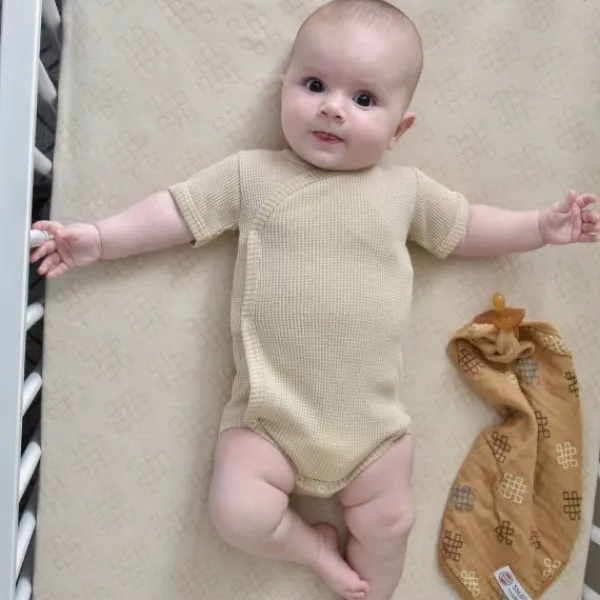 De Lodger Ciumbelle Overslagromper is gemaakt van gebreid katoen, waardoor het zacht en comfortabel aanvoelt. Doordat het katoen ook nog eens erg luchtig en absorberend is, is het de ideale romper voor zowel de lente als de zomer. Het is gemakkelijk om de romper bij jouw baby aan te doen, door de overslag met drukknoopjes. Het voordeel hiervan is dat de romper niet over het hoofdje van je kindje hoeft.