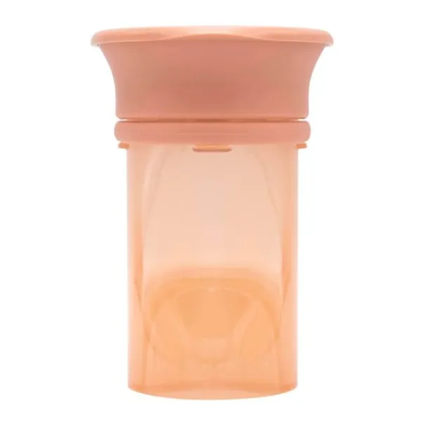 De Difrax Antilekbeker 360 Graden Peachy is een fijne drinkbeker voor je kindje. Deze antilekbeker is een ideale stap voordat je kindje uit een open beker gaat drinken. De beker voorkomt knoeien doordat er alleen drinken uit de beker komt op de plek waar je kindje de mond tegen de beker aan zet. De beker wordt geleverd inclusief afsluitdop, zodat hij ook makkelijk mee te nemen is. De drinkbeker is geschikt voor kindjes vanaf 9 maanden en draagt bij aan de spierontwikkeling in de mond. De beker heeft een inhoud van 250 ml en is voor in de vaatwasser. Gemaakt van hoogwaardig materiaal.