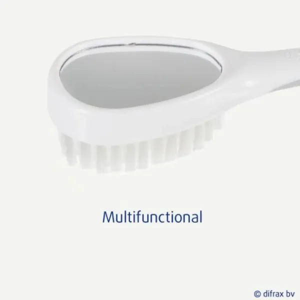 De Difrax Kapset Zilver is speciaal ontworpen voor de hoofdhuid van baby’s en jonge kinderen. De set bestaat uit een kammetje en een borstel. Doordat de borstelhaartjes zacht zijn, kun je ze gebruiken vanaf de geboorte. Wanneer je kind zelf de haartjes kan kammen, heeft de borstel een spiegeltje aan de achterkant zodat je kindje zichzelf kan bekijken. De borstel en kam hebben een zacht handvat waardoor deze makkelijk vast te houden zijn.