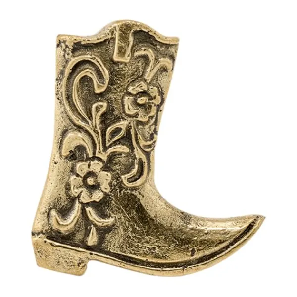 De Doing Goods Knop – Dallas Cowboy Laars – Messing brengt een vleugje wilde Westen in huis. Deze sierlijke laarsvormige meubelknop is met de hand gemaakt van 100% gerecycled messing en voorzien van fijne details, geïnspireerd op klassieke cowboylaarzen. Perfect voor wie zijn interieur net dat beetje extra wil geven. De knop is niet alleen een stoere blikvanger op kasten of lades, maar ook functioneel én duurzaam. De messing schroef (3–5 cm) is aanpasbaar en eenvoudig te monteren. Let op: draai voorzichtig vast om het messing niet te beschadigen. Elk exemplaar is uniek en ondersteunt lokale ambachtslieden in India.