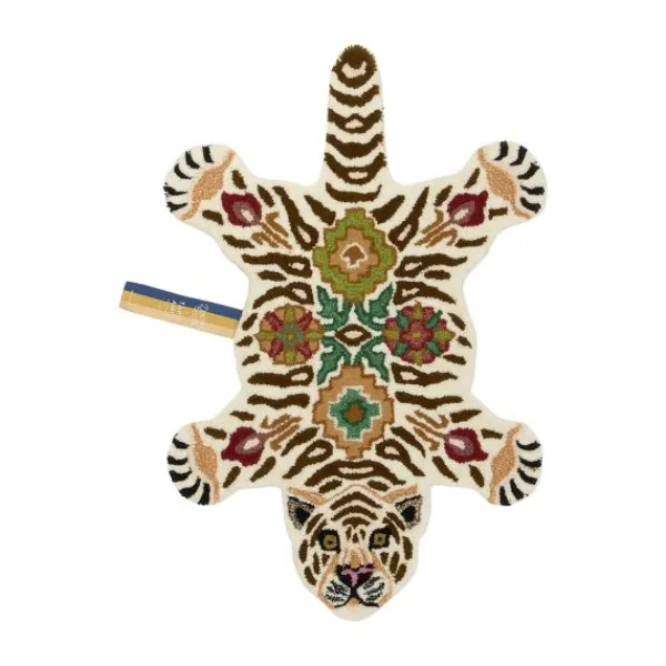 Het Doing Goods Vloerkleed – Tapis Amis – Jill Tijger Klein is een speels én stijlvol accent voor de kinderkamer of speelhoek. Dit kleurrijke vloerkleed in de vorm van een tijger is handgemaakt van 100% wol en afgewerkt met een katoenen achterkant. De combinatie van dierenvorm en bloempatronen maakt het een echte blikvanger. Dankzij het compacte formaat (90 x 63 cm) is het perfect als zacht speelkleed of decoratief wandkleed. Het kleed is GoodWeave-gecertificeerd, wat staat voor een eerlijke productie zonder kinderarbeid. Door het handwerk is elk kleed uniek en kan lichte verharing tijdelijk voorkomen.