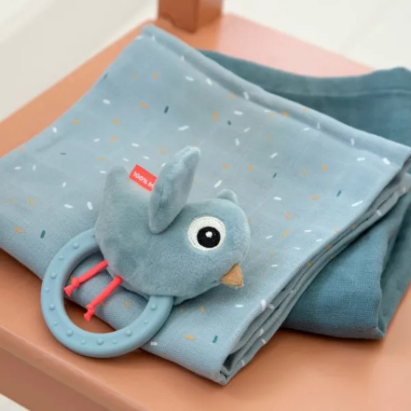 De Done By Deer Birdee Ringrammelaar – Blue is een vrolijk speeltje waar je kindje lekker mee kan knuffelen en spelen. De rammelaar van het merk Done By Deer is gemakkelijk vast te houden voor je kindje. Daarnaast is de ringrammelaar ook voorzien van een ring die perfect als bijtring kan dienen als de tandjes van je kindje doorkomen. Verder is de rammelaar gemaakt van hoogwaardig materiaal en voelt zacht aan.