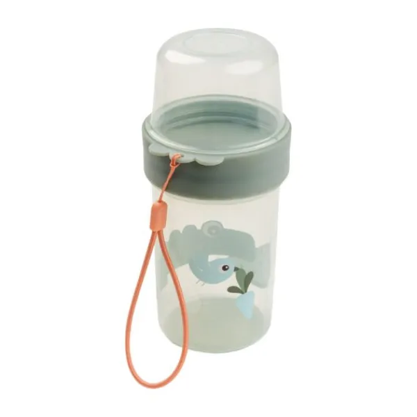 Deze Done By Deer Croco 2-Way Snackbox – Large – Green is het ideale trommeltje voor je kindje om mee te nemen. De snackbox bestaat uit 2 delen met een inhoud van 150 ml en 320 ml. De verschillende delen kunnen afzonderlijk van elkaar afgesloten worden. Het onderste gedeelte is ideaal om bijvoorbeeld fruit in te bewaren. Het bovenste gedeelte is zeer geschikt om kleine snacks mee te nemen. De snackbox is voorzien van een praktische draagband zodat het gemakkelijk mee te nemen is voor je kindje. Verder is de snackbox voorzien van een schattige print en geschikt voor zowel de magnetron als de vaatwasser.