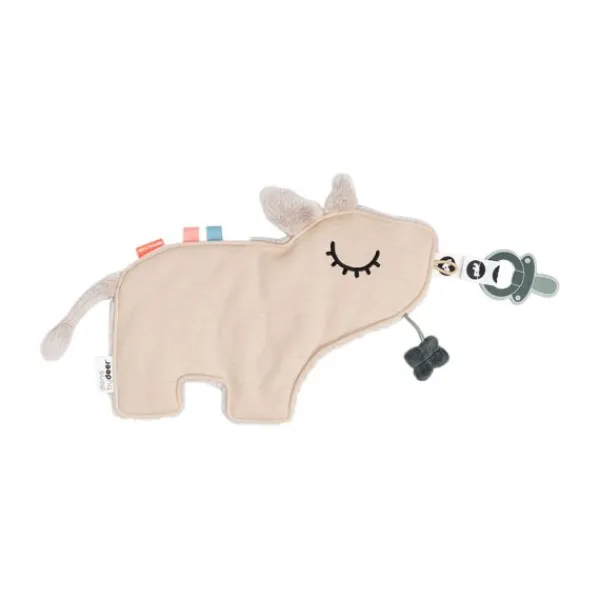 Het **Done By Deer Dotti Speendoekje – Sand** is een schattig en functioneel knuffeldoekje in de vorm van een lief koetje. Dit zachte speendoekje biedt niet alleen troost en geborgenheid, maar helpt ook om de speen van je kleintje altijd binnen handbereik te houden. Dankzij het handige lusje kan de speen eenvoudig worden vastgemaakt, waardoor deze minder snel kwijtraakt.