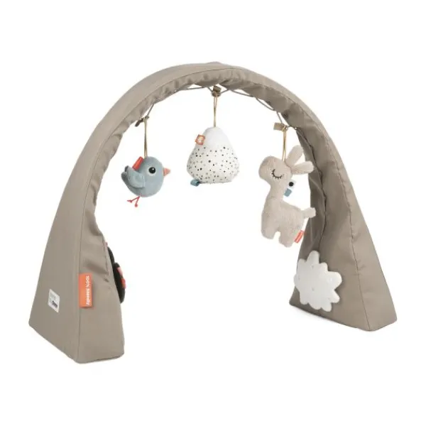 De Done by Deer Lalee Activity Gym Sand houdt iedere baby wel even zoet. Aan de boog hangen verschillende figuurtjes zoals Birdee die is voorzien van een belletje, Lalee die heerlijk zacht aanvoelt en een kleine berg met spiegeltje aan de onderkant. Aan de ene kant van de speelboog zit een cactus met vrolijk gekleurde labeltjes die je kindje erg interessant zal vinden. Aan de andere kant vind je een spiegeltje verborgen achter een wolkje. Door met de speelboog te spelen worden de zintuigen van je kindje geprikkeld. Verder is de boog gemaakt van hoogwaardig materiaal en hij kan worden gereinigd met een vochtige doek.