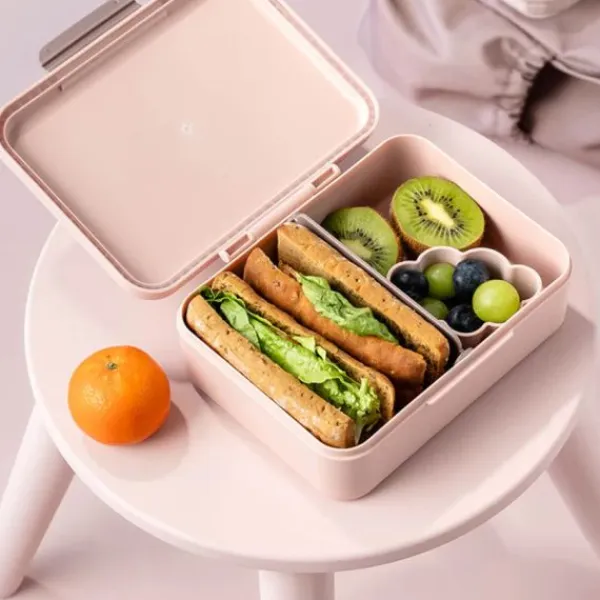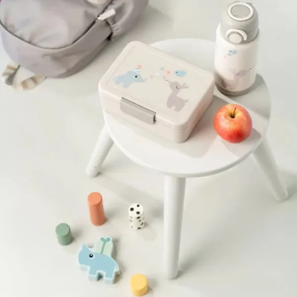De Done by Deer Lunchbox – Tiny Farm – Blue is perfect om een lunch of snack voor je kindje mee te nemen. De handige kliksluiting is eenvoudig te openen door kleine handjes en geeft een duidelijk klikgeluid zodra de deksel goed vastzit. De uitneembare verdeler kan op meerdere manieren worden geplaatst, zodat brood, fruit en snacks netjes gescheiden blijven. Gemaakt van 100% voedselveilig polypropyleen, vaatwasserbestendig (max. 70°C) en magnetronbestendig. Het vrolijke blauwe ontwerp met Dotti & Pigee maakt iedere lunch extra leuk.