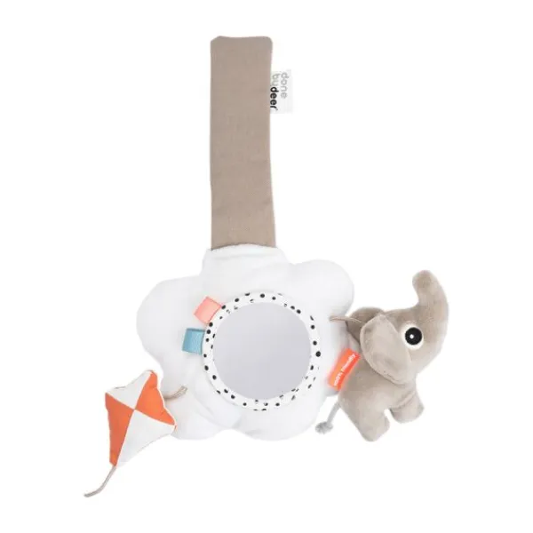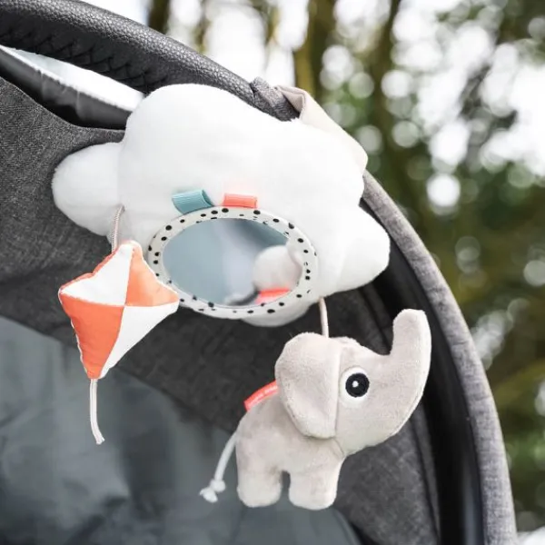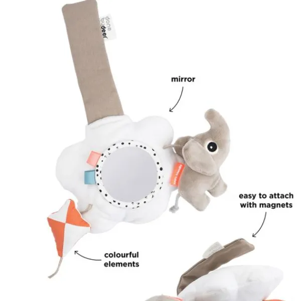 Het mobiel heeft een schattige Elphee olifant, een knisperende vlieger en labeltjes om te ontdekken. De spiegel helpt je baby om zichzelf te leren herkennen, terwijl de verschillende structuren en geluiden de tastzin en het gehoor prikkelen. Dankzij de stevige klittenbandsluiting is de mobiel gemakkelijk te bevestigen en los te maken.