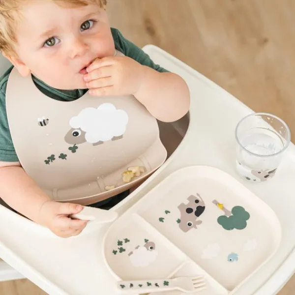 Maak etenstijd zorgeloos met de Done By Deer Sheepy Slab – Silicone – Sand! Deze schattige siliconen slab met een lief schaapje en klavertjes helpt knoeien te minimaliseren dankzij het diepe opvangbakje. Ideaal voor baby’s en peuters die zelfstandig leren eten!