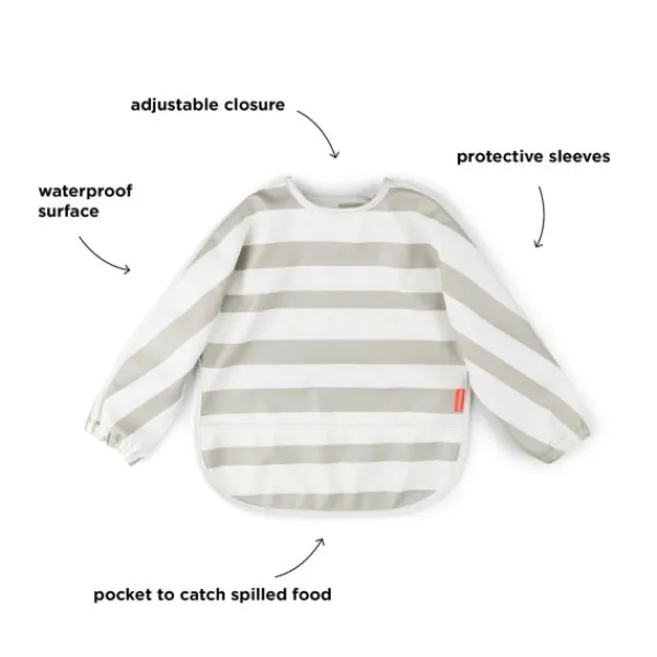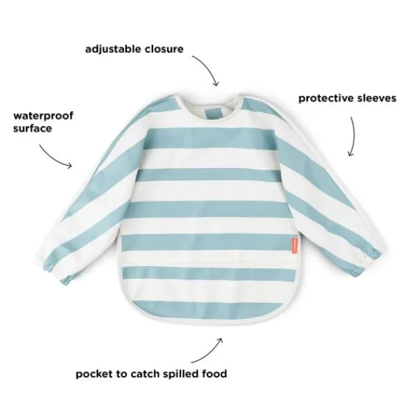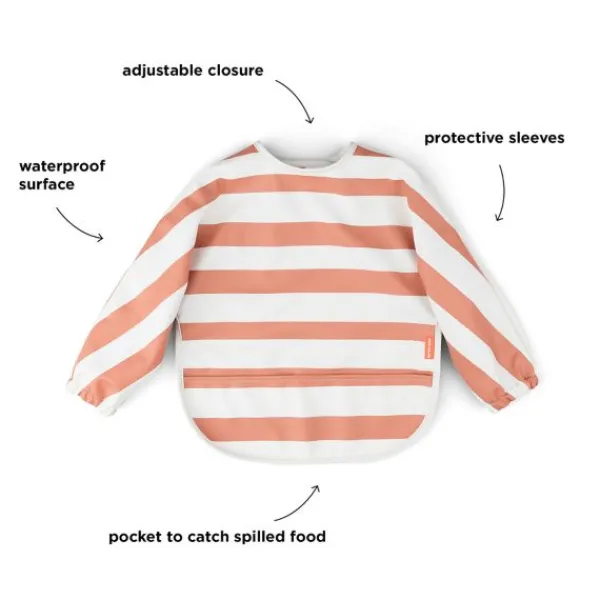 Dankzij de Done By Deer Stripes Slab – Met Mouwen – Sand zal je kindje niet zo snel meer over zijn of haar kleertjes knoeien. Met deze slab blijven de kleertjes schoon en droog. Dit komt mede door de mouwen die ervoor zorgen dat een groot gedeelte van de kleding van je kindje beschermt is. Naast de praktische functie van de slab, is de slab ook erg leuk ontworpen met een stijlvolle print. Verder is de Done by Deer Slab leuk te combineren met andere artikelen van Done by Deer.