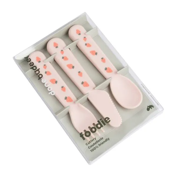Maak etenstijd extra leuk met het Done By Deer Tiny Farm Bestek – Powder! Dit schattige besteksetje is speciaal ontworpen voor kleine handjes en helpt je kindje zelfstandig te leren eten. De set bestaat uit een vork, mes en lepel, allemaal voorzien van een speels aardbeienontwerp op het handvat. Dankzij het ergonomische ontwerp ligt het bestek prettig in de hand en is het eenvoudig vast te houden door je kleintje.