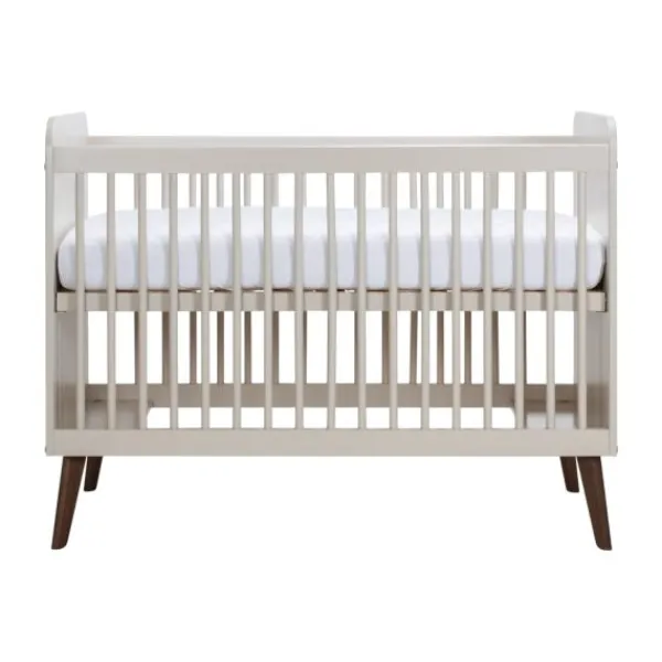 Het Europe Baby Olivia Ledikant – 60 x 120 cm – Oatmeal – Retro kenmerkt zich door de frisse en moderne stijl in combinatie met de klassieke, walnootkleurige details. Het ledikantje heeft pootjes van massief hout, wat het ledikantje een chique uitstraling geeft. Door de combinatie van de neutrale kleuren Oatmeal en Walnoot, past het ledikantje gemakkelijk binnen verschillende soorten babykamerinterieurs. De bodem van het ledikant is verstelbaar in drie verschillende hoogtes en groeit dus met je kindje mee. Hierdoor ligt je kindje altijd op de gewenste hoogte in het ledikant. Verder is het ledikant gemaakt van hoogwaardig materiaal, dat is bedoeld om lang mee te gaan.