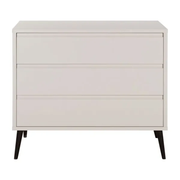 De Europe Baby Sterre Commode – Oatmeal / Zwart is een stijlvolle aanwinst voor elke babykamer. Dankzij de schuine, zwarte pootjes is de commode een echte eyecatcher! Naast stijlvol is de commode erg praktisch in gebruik. De commode biedt met drie lades genoeg opbergruimte voor al de spulletjes van je kindje. Doordat de lades zijn voorzien van soft closing kun je de lades geruisloos sluiten. Verder is de commode gemaakt van stevig materiaal en voldoet het aan de Europese veiligheidseisen.