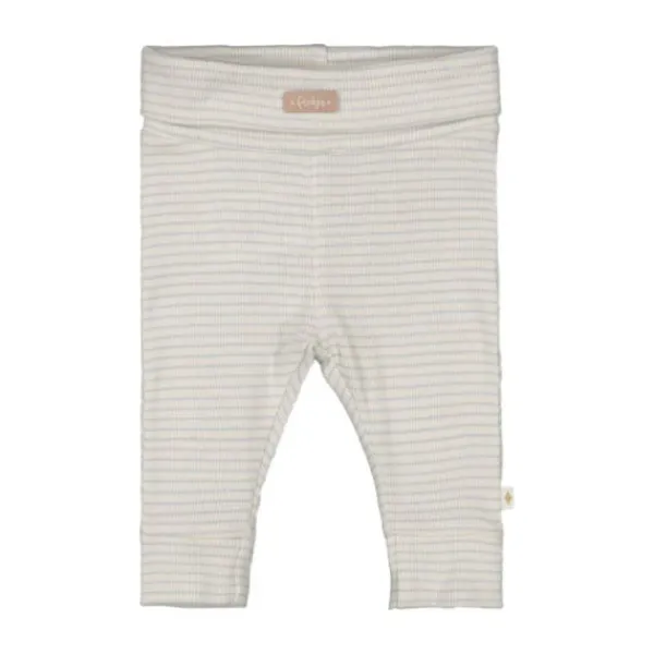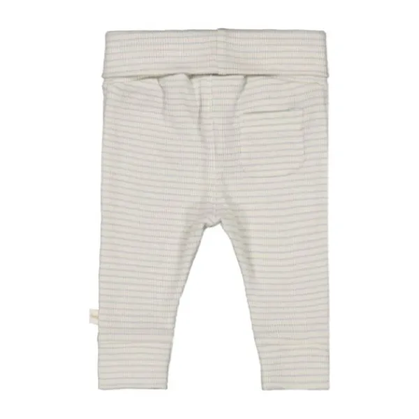 De subtiele streeppatronen in een combinatie van crème en blauw geven de broek een frisse, zachte uitstraling. De brede tailleband zorgt voor een comfortabele pasvorm en blijft goed zitten zonder te knellen. Aan de achterzijde is een klein opgestikt zakje toegevoegd voor een speels detail. De ribboorden aan de pijpen zorgen ervoor dat het broekje netjes blijft zitten, ook tijdens de eerste bewegingen van je kleintje.