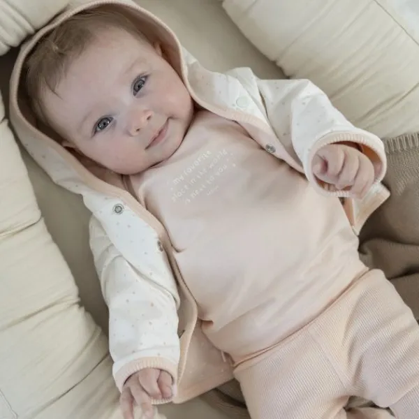 Dit leuke Feetje The Magic is in You Quote Longsleeve – Mt. 50 – Roze is een echte aanwinst voor in de kledingkast van jouw kindje! Dit longsleeve shirt is voorzien van een schattige quote, met de tekst: “My favorite place in the world is next to you”. Daarbij heeft het shirt een mooie roze kleur, waardoor deze goed met verschillende kleertjes gecombineerd kan worden. Ook heeft de longsleeve drukknoopjes op het schoudertje, zodat je het shirtje gemakkelijk aan- en uit kan trekken bij je kleintje. Verder is de longsleeve gemaakt van hoogwaardig materiaal, dat zacht en comfortabel aanvoelt.