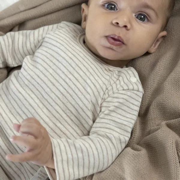 Dit leuke Feetje The Magic is in You Rib Longsleeve Met Streep – Mt. 50 – Taupe Melange is een echte aanwinst voor in de kledingkast van jouw kindje! Dit longsleeve shirt is voorzien van een leuk design met streepjes, wat zorgt voor een speels effect. Daarbij heeft het shirt een mooie taupe kleur, waardoor deze goed met verschillende kleertjes gecombineerd kan worden. Ook heeft de longsleeve drukknoopjes op het schoudertje, zodat je het shirtje gemakkelijk aan- en uit kan trekken bij je kleintje. Verder is de longsleeve gemaakt van hoogwaardig materiaal, dat zacht en comfortabel aanvoelt.