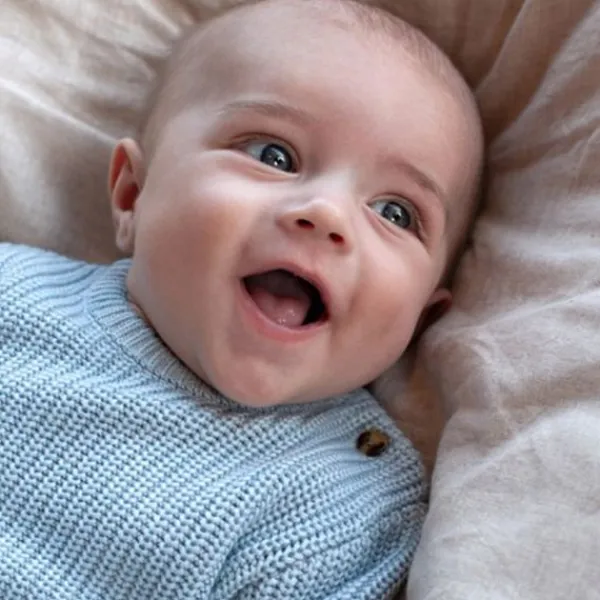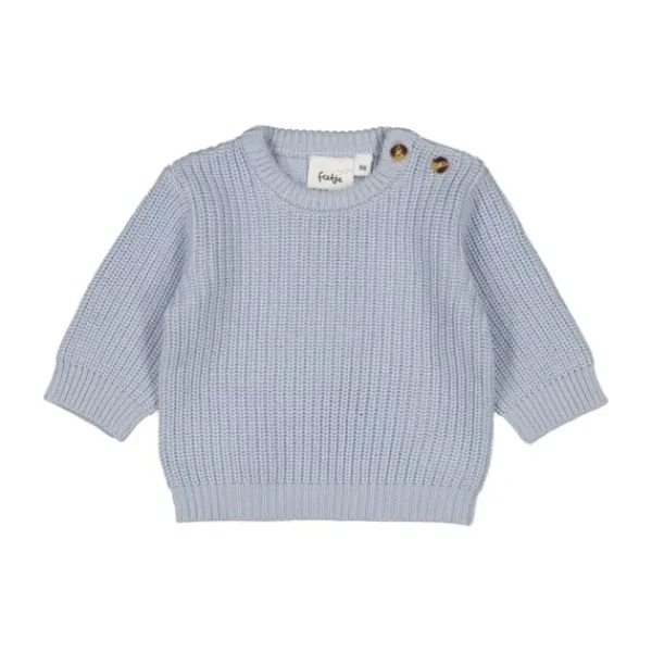De Feetje Sweater Gebreid – The Magic Is In You – Maat 56 – Blauw is een heerlijk zacht en warm truitje voor baby’s van ongeveer 1 maand oud. Deze gebreide babytrui heeft een klassieke uitstraling door de grove structuur en zachte, lichtblauwe kleur. De ronde halslijn met knoopsluiting op de schouder maakt het aan- en uitkleden extra makkelijk.