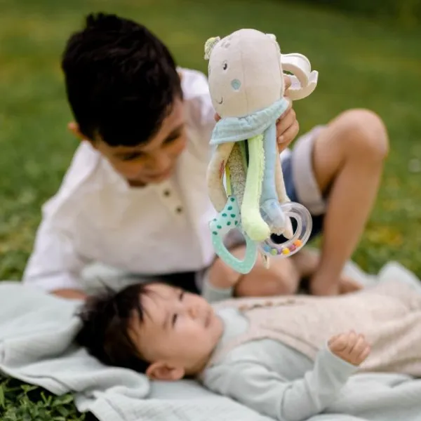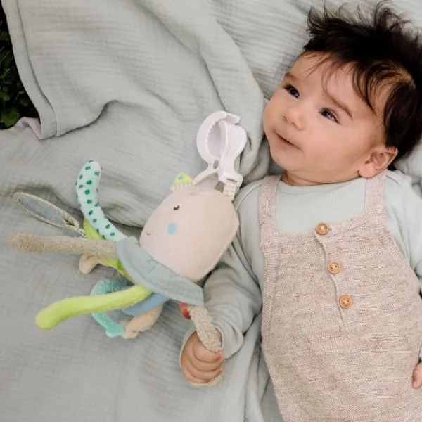 Het Fehn Activity Hangspeeltje – Octopus – Children Of Sea biedt je baby volop speelplezier. Met een belletje in het hoofdje, rammelaar, bijtring en spiegeltje stimuleert dit zachte speeltje de zintuigen en motoriek vanaf de geboorte. De verschillende structuren en kleuren nodigen uit tot grijpen en ontdekken. Dankzij de handige clip bevestig je het speeltje eenvoudig aan een kinderwagen, autostoel of box. Ideaal voor thuis én onderweg!