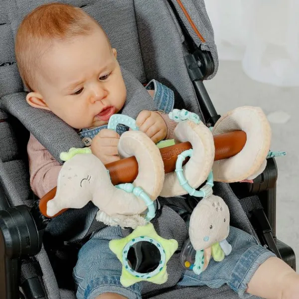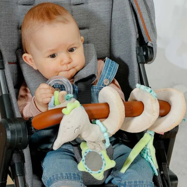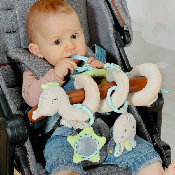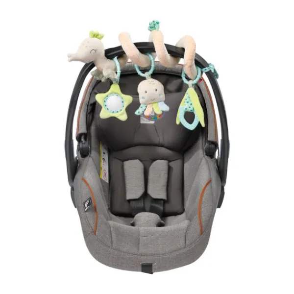 De Fehn Activity Spiraal – Children Of Sea – Zeepaardje is een vrolijk en veelzijdig speeltje voor je baby. De zachte spiraal wikkel je eenvoudig rond de duwbeugel van een kinderwagen, autostoel of box. Zo heeft je kindje altijd iets leuks om naar te kijken, grijpen en ontdekken. De spiraal is uitgerust met verschillende speelelementen zoals een spiegeltje, bijtring en rammelaar met kleurrijke bolletjes. Deze stimuleren spelenderwijs de zintuigen en motoriek. De zachte materialen en vriendelijke kleuren maken het extra aantrekkelijk voor kleine handjes.