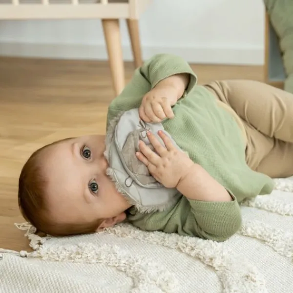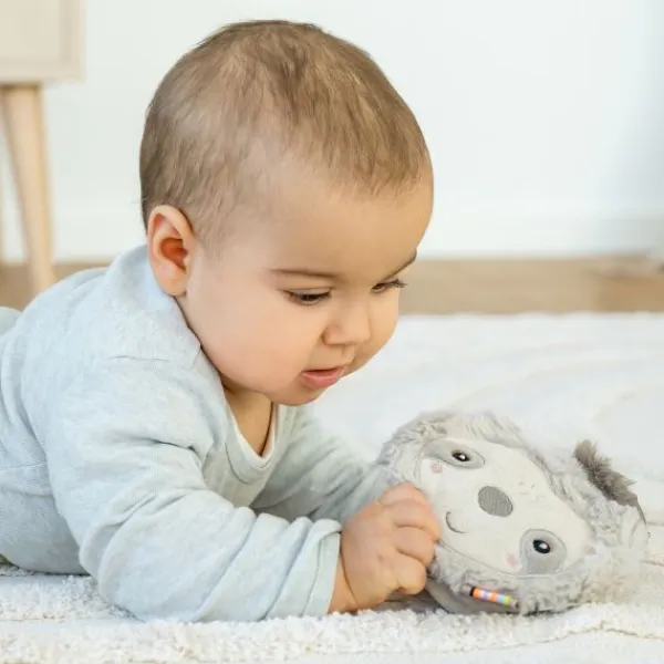 Het Fehn Stoffen Boekje – Sloth – Soft Activity zit boordevol speelse verrassingen zoals een pieper, knisperpapier, rammelaar en spiegeltje. Dit zachte babyboekje stimuleert het grijpen, voelen en de eerste zelfherkenning op een veilige en speelse manier. Gemaakt van extra zachte materialen en ontworpen in rustige kleuren met een schattige luiaard. Dankzij de handige bevestigingsring is het boekje makkelijk mee te nemen in de kinderwagen, box of autostoel. Geschikt vanaf de geboorte.