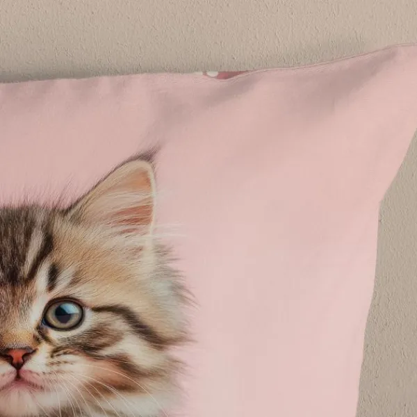 - – Kinderdekbedovertrek met kattenprint op roze achtergrond