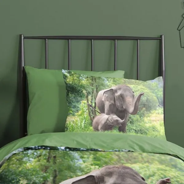 Good Morning Elephants Dekbedovertrek – Green – 140 x 220 cm