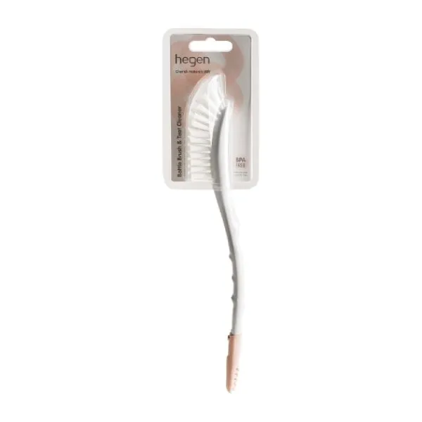 De Hegen Flessenborstel mag niet ontbreken in de keuken om de drinkflesjes van je kindje schoon te maken. Bovendien is de flessenborstel ook geschikt om flessenspenen, kolf- en voeding accessoires hygiënisch mee te reinigen. De zachte nylon haren en de ergonomische vorm zorgen ervoor dat je moeiteloos op de moeilijk bereikbare plekjes komt. Bovendien is de uiteinde van de flessenborstel voorzien van verwijderbare speenreiniger. De flessenborstel is volledig stoom- en UV-steriliseerbaar voor optimale hygiëne.