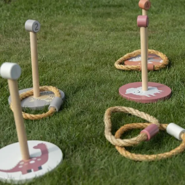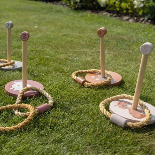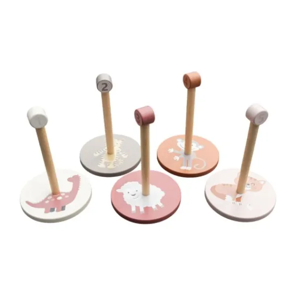 Met de Jep! Kids Ring Toss beleven kinderen eindeloos speelplezier, zowel binnen als buiten! Dit klassieke werpspel is gemaakt van stevig hout en heeft een vrolijk dierenontwerp. Het spel stimuleert de hand-oogcoördinatie en behendigheid op een speelse manierDe set bestaat uit vijf houten staanders met schattige dierenillustraties en bijbehorende touwringen. Dankzij de zachte kleuren past het perfect in elke speelkamer of tuin. Gemakkelijk op te zetten en op te bergen, ideaal voor jong en oud!