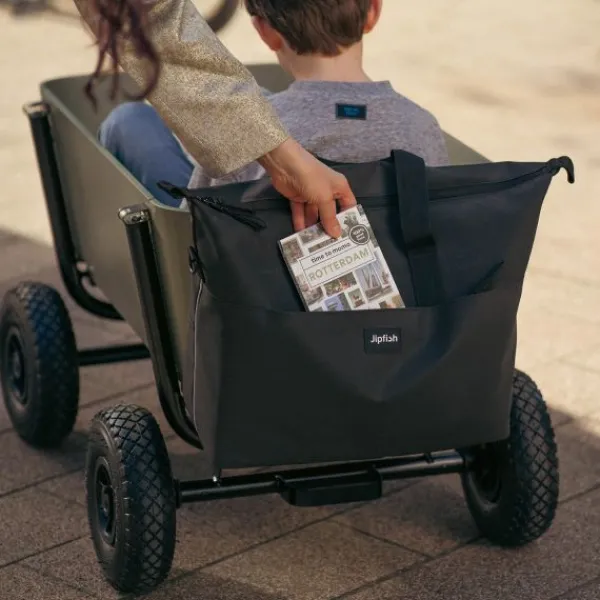De Jipfish Calos Tas – Black is ontworpen voor ouders die onderweg net dat beetje extra ruimte nodig hebben. Deze slimme en stijlvolle tas klik je moeiteloos aan beide zijden van je Jipfish Wagon. Dankzij de geïntegreerde haken en los te maken schouderband gebruik je hem eenvoudig als handtas, fietstas of schoudertas. De tas is gemaakt van stevig 500D TPU polyester van 100% gerecycled materiaal, wat hem niet alleen duurzaam maar ook waterafstotend maakt. Binnenin vind je praktische vakken voor overzichtelijke opbergruimte. Ideaal voor dagelijks gebruik of uitstapjes met het gezin.