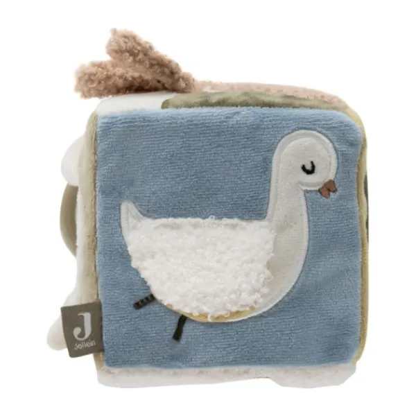 De Jollein Activiteitenkubus is een veelzijdig speeltje dat alle zintuigen van je baby prikkelt. Elke zijde van de kubus biedt iets nieuws om te ontdekken: knispermateriaal, labels, spiegeltjes, verschillende stofstructuren en vrolijke diertjes zorgen voor eindeloos speelplezier. Dankzij de handige lus met ring is de kubus eenvoudig te bevestigen aan de box, autostoel of kinderwagen. De zachte materialen en speelse elementen maken dit speelgoed niet alleen leuk, maar ook leerzaam. De kubus stimuleert de fijne motoriek, hand-oogcoördinatie en het grijpreflex van je kindje. Verkrijgbaar in verschillende schattige thema’s zoals een prinsessenkatje, konijntje of uiltje – perfect om cadeau te geven of zelf in huis te halen.