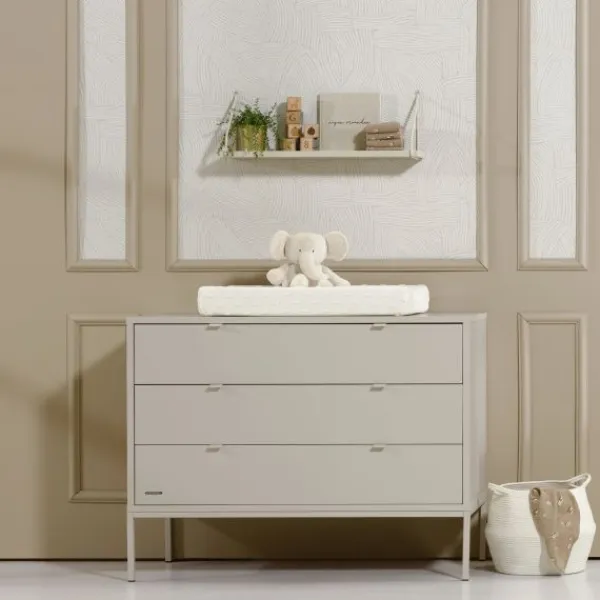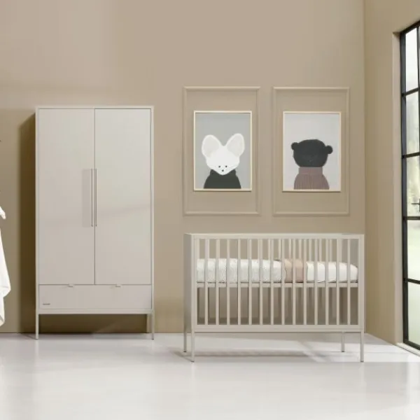 Wat direct opvalt bij de Babykamer Amy Oatmeal zijn de hoge, metalen pootjes. De meubels hebben een Oatmeal kleur die zich goed laat combineren. Verder is het ledikant verstelbaar in 3 verschillende hoogtes en beschikt de commode over 3 ruime opbergladen. Daarnaast beschikken de meubels van de Amy babykamer over het soft-close systeem. Een moderne kamer voorzien van een stijlvol design.