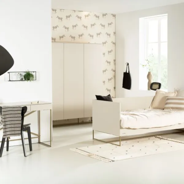 Kidsmill Intense II Kinderkamer Oatmeal / Patinated Brass | Bedbank 90 x 200 cm + Kast 3-Deurs