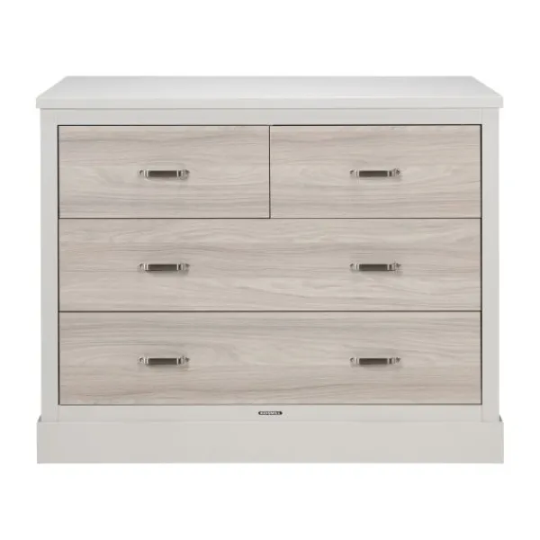De Kidsmill Newport Commode Incl. RVS Grepen – Oatmeal / Eiken kenmerkt zich door het moderne en strakke design, in combinatie met de eiken look lades. De eiken lades geven de commode een warme en knusse uitstraling, wat een leuk contrast vormt met het moderne design. De commode is voorzien van twee opberglades, die sluiten door middel van soft-close. Hierdoor kun je de lades geruisloos openen en sluiten. Verder is de commode gemaakt van hoogwaardige materialen en is het perfect te combineren met andere meubels uit de Newport serie.
