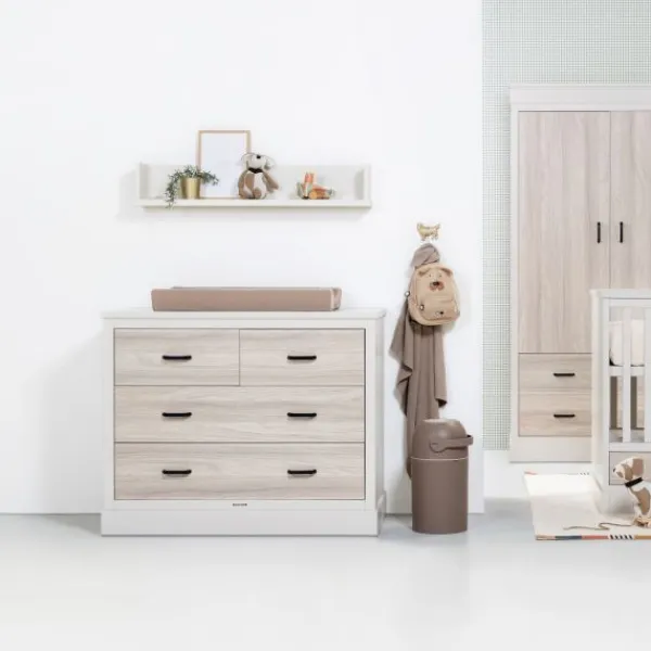 De Kidsmill Newport Commode Incl. Zwarte Grepen – Oatmeal / Eiken kenmerkt zich door het moderne en strakke design, in combinatie met de eiken look lades. De eiken lades geven de commode een warme en knusse uitstraling, wat een leuk contrast vormt met het moderne design. De commode is voorzien van twee opberglades, die sluiten door middel van soft-close. Hierdoor kun je de lades geruisloos openen en sluiten. Verder is de commode gemaakt van hoogwaardige materialen en is het perfect te combineren met andere meubels uit de Newport serie.