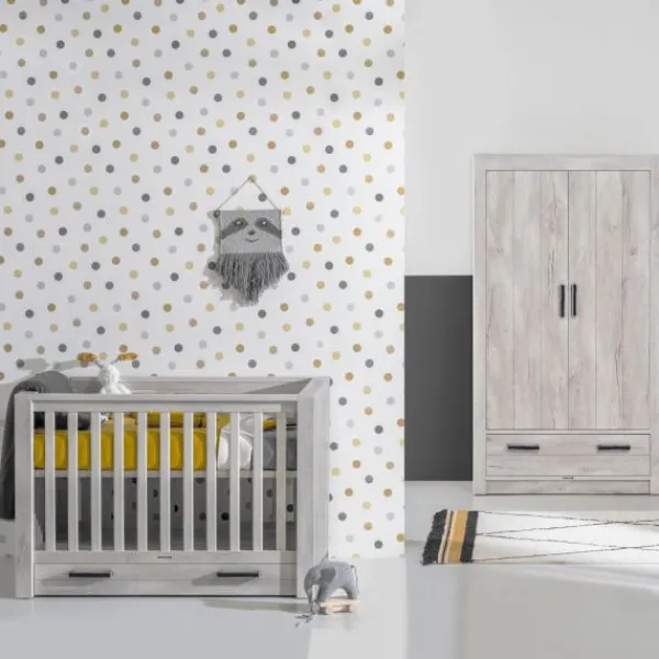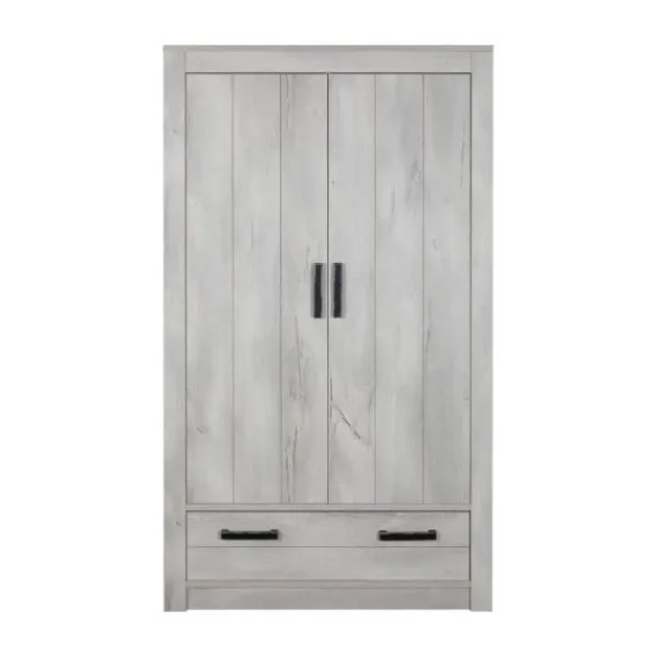 Een robuuste kledingkast met voldoende opbergruimte voor al de kleertjes van je kind. De kast is uitgerust met twee deuren en een lade. De combinatie van strakke handgrepen en een houten afwerking maakt het meubel uniek. De kledingkast is gemaakt van gelamineerd plaatmateriaal en goedgekeurd volgens de Europese Veiligheidseisen.