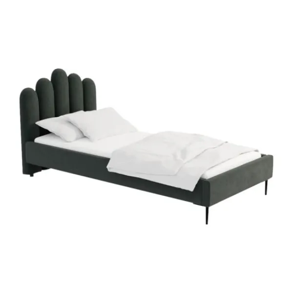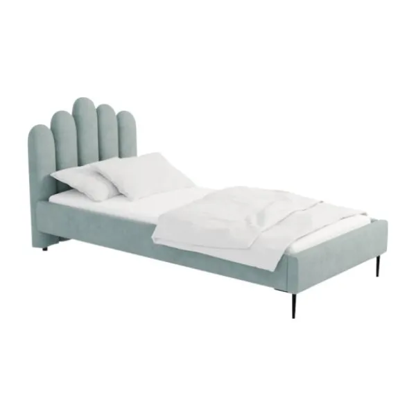 Het Kidsmill Shell Bed – Juke – 90 x 200 cm – Azure heeft een eigentijdse en luxe look waar je meteen verliefd op wordt! Het bedframe en hoofdbord zijn bekleed met hoogwaardig fluweel waardoor je het bed gemakkelijk kunt onderhouden. Daarnaast beschikt het gestoffeerde bed over stevige metalen poten in een zwarte kleur. Om de slaapkamer helemaal af te maken kan het stoffen bed gecombineerd worden met vintage of robuuste meubels en accessoires. Verder wordt het stoffen bed geleverd zonder lattenbodem en matras. Deze dien je los mee te bestellen.